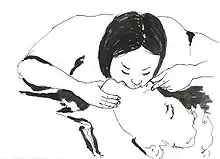 - Використовуючи рот, прикрийте рот і ніс дитини одночасно. Введіть повітря таким чином (провітрювання або рятувальне дихання). Знову введіть повітря (інша ідентична вентиляція або рятувальне дихання).