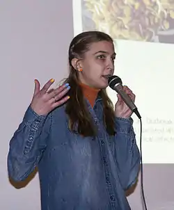 ![]() Ася Казанцева під час лекції в Києві в Інституті ботаніки НАН (2016) | |