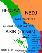 | Карти, що показують зміна території емірату Асір. | ||||||||