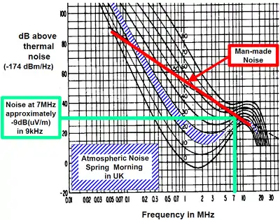 Хоча блискавки спричиняють шуми широких діапазонів, але потужність їх шуму підвищується з пониженням частоти. Отже в діапазоні наднизьких і низьких частот атмосферні шуми часто домінують, тоді як на високих частотах в міських районах промисловий шум переважає.