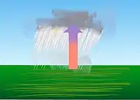 - напрямок руху повітря. Найбільше опадів випадає там, де переважають висхідні рухи повітря, і менше — у випадку низхідних. Екваторіальна зона низького тиску (понад 2000-3000 мм/рік). Навітряні схили височин і гірських хребтів одержують більше атмосферних опадів, ніж підвітряні схили. Найвологіше місце на Землі, Черрапунджі (близько 12 000 мм опадів на рік), розташоване на навітряному схилі Гімалаїв на висоті близько 1300 м в Індії.