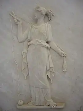 Вона працювала разом зі своїми сестрами: Клото, яка пряла нитку, та Лахесіс, яка вимірювала довжину людського життя. [2][3]