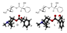 Атропін оптично неактивний: складається з активного і малоактивного правообертального ізомерів. Фізіологічною дією володіє лише лівообертальний енантиомер (-)-гіосцинамін. Природним алкалоїдом, який міститься у рослинах, є гіосцинамін; при хімічному виділенні алкалоїду він в основному перетворюється на рацемічну форму — атропін[1].