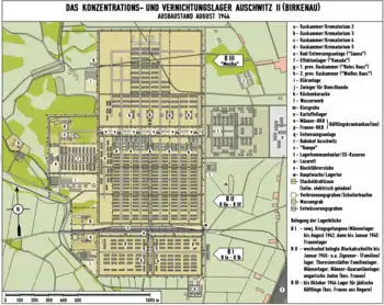 Спорудження Біркенау почалось у жовтні 1941 з метою розвантаження перенасиченого основного табору. За проєктом він був розподілений для утримання кількох категорій в'язнів.[45]