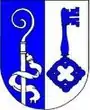 Щит розділений на дві частини, на лівій стороні щита знаходиться срібний жезл єпископа на синьому тлі, а на правій стороні синій ключ на сріблному тлі.