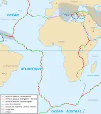Більшість меж плити дивергентні, представлені зонами спредингу. Тобто більшість плит рухаються від Африканського континенту. На заході вона відокремлена від Північноамериканської плити і Південноамериканської плити центральною і південною частинами Срединно-Атлантичного хребта. На півдні зона спредингу відокремлює Африканську плиту від Антарктичної плити. На південному сході межує з Індо-Австралійською плитою, на північному сході — з Аравійською плитою, на південному сході — з Сомалійською плитою, на півночі плита — з Анатолійською і Євразійською плитами. Всі межі є зонами спредингу, за винятком невеликої межі з Євразійською плитою (рифт Терсейра біля Азорських островів)