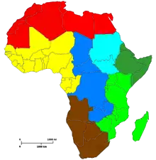 Алан П. Мерріам розділив Африку на сім регіонів для етномузикологічних цілей, спостерігаючи за поточними політичними кордонами (див. Карту), і ця стаття якнайдалі дотримується цього поділу під час дослідження музики етнічних груп в Африці .