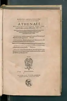 У виданні Ісаака де Казобона «Бенкетуючі софісти» з'явився вперше текст цього твору і переклад його (Женева, 1597), потім коментар до нього (Ліон, 1600) і, нарешті, видано все разом (Ліон, 1612 і 1664). Потім тільки коментар без перекладу (Лейпциг, 1796 −1843) у супроводі детальних приміток; у виданні Швейггейзера (14 томів, Страсбург, 1801–1807) поміщений латинський переклад і самий текст, виправлений за новими рукописним екземплярам. Кишенькові видання випущені Діндорфом (3 т., Лейпциг, 1827) і Мейнеке (3 т., Лейпциг, 1859; 4-й том завершує «Критичні додатки» («Analecta critica»), Лейпциг, 1867).