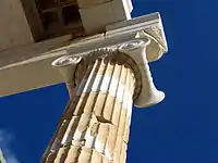 Відреставрована іонічна колона на вході в Афінський Акрополь.