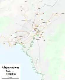 Тривалий час Афінський тролейбус лишався єдиною тролейбусною системою у місті-столиці країни ЄС (до початку процесу інкорпорації у Євросоюз країн нової демократії після 1991 року). Афінська тролейбусна мережа — найбільша у Євросоюзі.