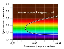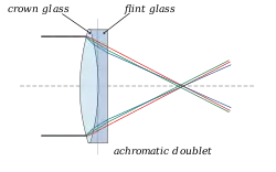 Зведення зображення в ахроматі відбувається за двома променями, що знаходяться на краях спектра: синього та червоного.