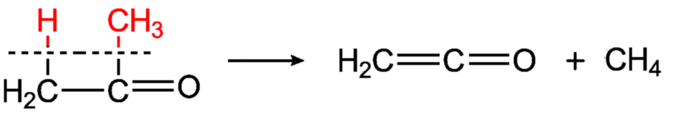 При піролізі ацетону (500—700 °С) над глиноземом або на розпеченому електричним струмом платиновому дроті в спеціальному приладі — кетенній лампі, утворюється найпростіший кетен — етенон:
