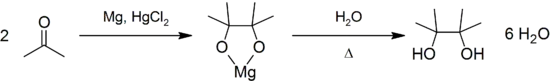 При конденсації трьох молекул ацетону під дією концентрованої сульфатної або хлоридної кислоти утворюється симетричний триметилбензол (мезитилен):
