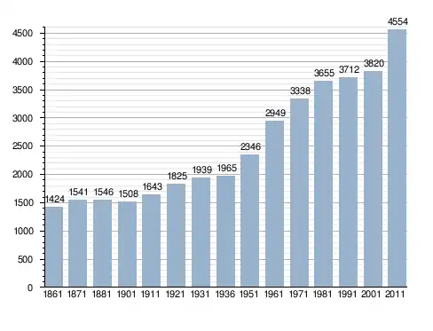 Станом на 31 грудня 2014 року в муніципалітеті офіційно проживало 310 іноземців з 34 країн, серед них 119 громадян країн Євросоюзу та 40 громадян України.[4]