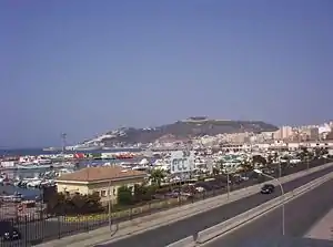 ![]() Гора Ачо, на передньому плані —- гавань Сеути. На вершині височини видна фортеця Монте Ачо. | ||||