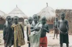 ![]() Діти ачолі в таборі для переміщених осіб в Кітгумі | |