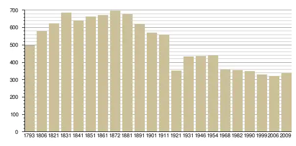 Динаміка населення (base Cassini de l'EHESS pour les nombres retenus jusque 1962[3], base Insee à partir de 1968 (population sans doubles comptes puis population municipale à partir de 2006)[4] · [5] ):