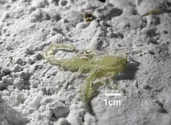 Троглофільні скорпіони, як правило, зустрічаються тільки в тропіках[72]. Тому знахідка підземних скорпіонів поза тропіками в Ізраїлі здивувала вчених[73]. За однією з гіпотез, скорпіони поряд з печерними ракоподібними є залишками реліктової фауни часів тропічного океану Тетіс. За іншою гіпотезою, вони є частиною самостійної підземної екосистеми, яка склалася незалежно від наземного життя[74]. Нарешті, за третьою гіпотезою передбачається, що скорпіони не розвивалися разом з підземними ракоподібними, а заселили печеру значно пізніше.