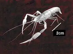 | Tethysbaena ophelicola | Вищі раки, Термосбенові | так | морського походження, всі стадії розвитку здебільшого відбуваються в печерному озері[35] |