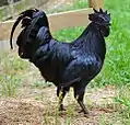 Птахи повністю чорні: чорне оперення із зеленуватим блиском, чорні ноги і нігті на пальцях ніг, чорний дзьоб та язик, чорний гребінь та борідка, чорні м'ясо та кістки і навіть темні органи. Півні важать 2-2.5 кг та курки 1.5-2 кг. Кури не сидять на сідалі. За рік несуть до 80 білих яєць з невеликим рожевим відтінком. Яйця важать в середньому 45 гр.[3]