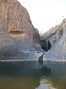 Долина довкола міста Тіміа лишається зеленою завдяки іригації, поверхнева вода збирається у скелястих басейнах, а дощова вода направляється по ваді з гравійним дном.