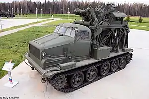 - Базова машина — важкий артилерійський тягач АТ-Т.