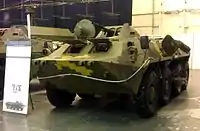 Бронетранспортер БТР-70 — бойова колісна плаваюча машина, що призначена для транспортування особового складу мотострілецьких підрозділів сухопутних військ. Чотиривісна, з незалежною підвіскою, восьмиколісна (з усіма ведучими колесами), має високі динамічні характеристики та плавність ходу, кругове бронювання та кулеметне озброєння (кулемет КПВТ калібру 14,5 мм, та кулемет ПКТ калібру 7,62 мм).