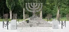 - Пам'ятник розстріляним євреям у вигляді менори.