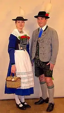 У баварців, як і у решти народів, існують свої національні костюми. Причому подібні вбрання деякі баварці носять не тільки у свята, але й у повсякденному житті. Для чоловіків це короткі замшеві куртки, шкіряні короткі штани, гетри, а також капелюхи мисливської форми з витим шнуром. До капелюхів іноді вставляють пір'я чи волосяні щітки — це символізує вуса убитих ведмедів. Для жінок — це сукні з пишними спідницями.