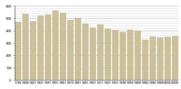 Динаміка населення (base Cassini de l'EHESS pour les nombres retenus jusque 1962[3], base Insee à partir de 1968 (population sans doubles comptes puis population municipale à partir de 2006)[4] · [5] ):