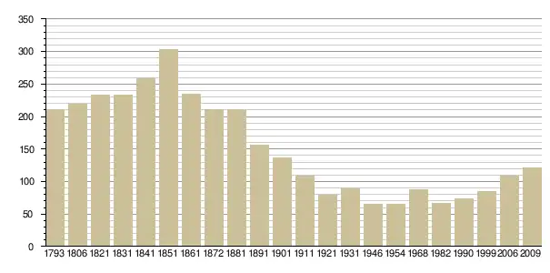 - Notice communale Cassini (recensements de population (Tableau і diagramme d'évolution), наведено за французькою вікіпедією