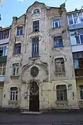Будинок № 32 зведений у 1910—1915 роках у стилі раціонального модерну.