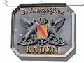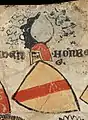 - У Цюрихському гербовнику 1340 року зображено герб баденського маркграфа — у золотому готичному щиті червоний перев'яз; над щитом золотий шолом типу топхельм із червоним наголовником, повернений праворуч; у нашоломнику — чорний і срібний роги, прикрашені чорним і срібним листям.