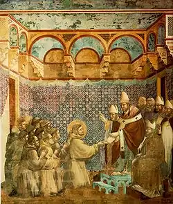 Спонукуваний власним бажанням і бажанням усіх християн, папа прискорив процес канонізації, призначивши комісію кардиналів. Близько сорока чудес, що підлягали розгляду, були історично засвідчені, але багатьом ця процедура здалася зайвою. «Яка потреба, — говорили вони, — в засвідчених дивах, якщо святість цього святішого чоловіка ми бачили своїми очима, відчували своїми руками і знаємо, що вона перевірена істиною?». Залишалося лише зробити великий обряд. 16 липня 1228 року Григорій IX прибув з Перуджі в Ассізі, відслужив папське богослужіння на Площі св. Георгія і урочисто зарахував Франциска до лику святих.[25] | ||