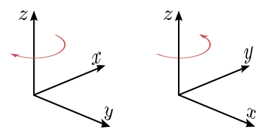 Набір лінійно незалежних векторів можна неперервно перетворювати, тому ні у якій проміжній конфігурації об'єм не перетвориться на нуль, або до набору (правий базис), або до набору (лівий базис). Зокрема, перетворення здійснюється як поворот у площині, натягнутій на вектори на кут