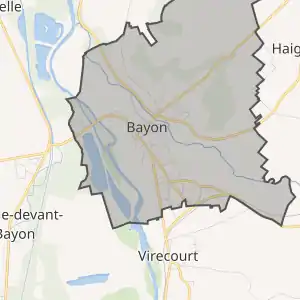 - Розташування муніципалітету Байон на мапі Франції та сусідні муніципалітети