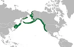 Вид поширений на півночі Тихого океану. Гніздиться вздовж морського узбережжя Каліфорнійського півострова (Мексика), західних штатів США, Канади, Аляски, материкової Росії, Алеутських і Курильських островів та Японії. Бродячі птахи спостерігалися в Китаї, Кореї, Тайвані і на Гаваях.