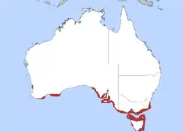 Цей вид зустрічається уздовж південного узбережжя Австралії з двома незалежними популяціями: одна на узбережжі південно-західної Австралії, інша на берегах Південної Австралії, штату Вікторія і у Тасманії. Чисельність популяції становить близько 10000 птахів.