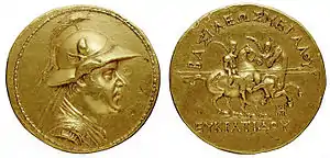 Греко-бактрійці отримали поразку від степовиків саків. Поблизу Тилля-тепе біля північно-афганського міста Шибарган на заході Бактрії було знайдено багате захоронення сакського царя з часів їхнього панування у 1 сторіччі до н. е. з сережками, що зображають людину серед двох драконів.