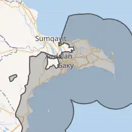 Місто розташоване в південній частині Апшеронського півострова, на березі Каспійського моря.