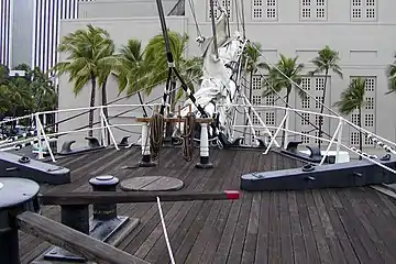 На вітрильниках та військових кораблях баком називають весь простір верхньої палуби від форштевня до фок-щогли[2] чи бойової рубки[3]. У цьому значенні також вживається термін форде́к[4] (від нід. voordek, англ. foredeck, нім. Vordeck — «передня палуба»).