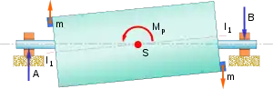 У випадку динамічної незрівноваженості виникає момент від сил інерції Mp, при цьому центр мас деталі S може знаходитись на осі обертання. Незрівноважений момент від сил інерції Mp викликає в опорах додаткові реакції A і B. Із зменшенням довжини ротора (відстані між опорами) величина цього моменту зменшується. Тому для відносно тонких обертових деталей, довжина яких не перевищує 2…3 діаметрів (махові колеса, шківи, зубчасті колеса тощо) застосовують лише статичне балансування.