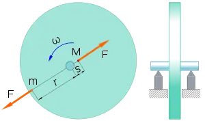 У випадку статичної незрівноваженості при обертанні деталі з кутовою швидкістю ω виникає відцентрова сила інерції