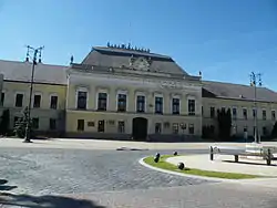 Місто розташоване на лівому березі річки Іполіт, яка позначає державний кордон із Словаччиною.