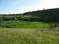 Луки на місці колишнього ставочка, а також вид на відвали північно-східного схилу балки.