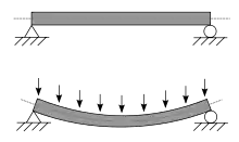 - шарнірно-рухома, що накладає заборону на переміщення у певному напрямку (перпендикулярно до опорної поверхні); єдина опорна реакція діє у цьому ж напрямку; опора допускає переміщення вздовж опорної поверхні та поворот балки відносно закріпленої точки (шарніра);