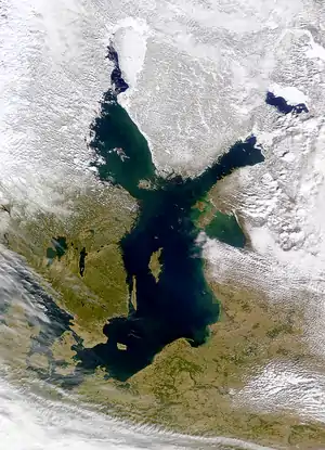 Балтійське море є слабомінералізованим внутрішнім морем, і є найбільшим басейном солонуватої води у світі (іноді називають Чорне море). Займає басейн утворений льодовиковою ерозією.