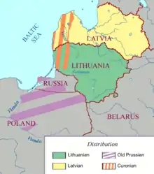Історично мовами розмовляли на більшій території: на захід до гирла річки Вісли в нинішній Польщі, принаймні на схід до річки Дніпро в сучасній Білорусі, можливо, навіть до Москви, і, можливо, на південь до Київ. Основні докази присутності балтійської мови в цих регіонах знаходяться в гідронімах (назвах водойм), які є характерними для балтії. Використання гідронімів є загальноприйнятим для визначення ступеня впливу культури, але не дати такого впливу.