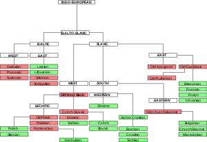 Усередині індоєвропейської мови балтійські мови загалом класифікуються як єдина сім’я з двома гілками: східною та західнобалтійською. Однак ці дві гілки іноді відносять до самостійних гілок самої балтослов’янської мови.[5]