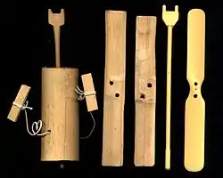 Сучасні японські такетомбо, бамбуковий зліва і пластиковий справа